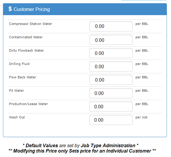 ** The Default Price listed will be automatically populated from the Job Type Administration **