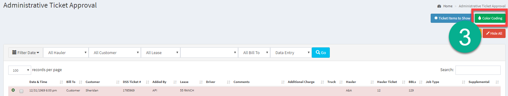 6.) Tickets that do not meet Color Coding settings will be displayed in RED