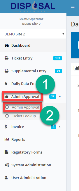 1.) Select the Admin Approval Icon from the Side Menu: