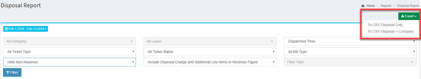 After all filters are set you can also Export the Disposal Report to a CSV (Excel Spreadsheet)