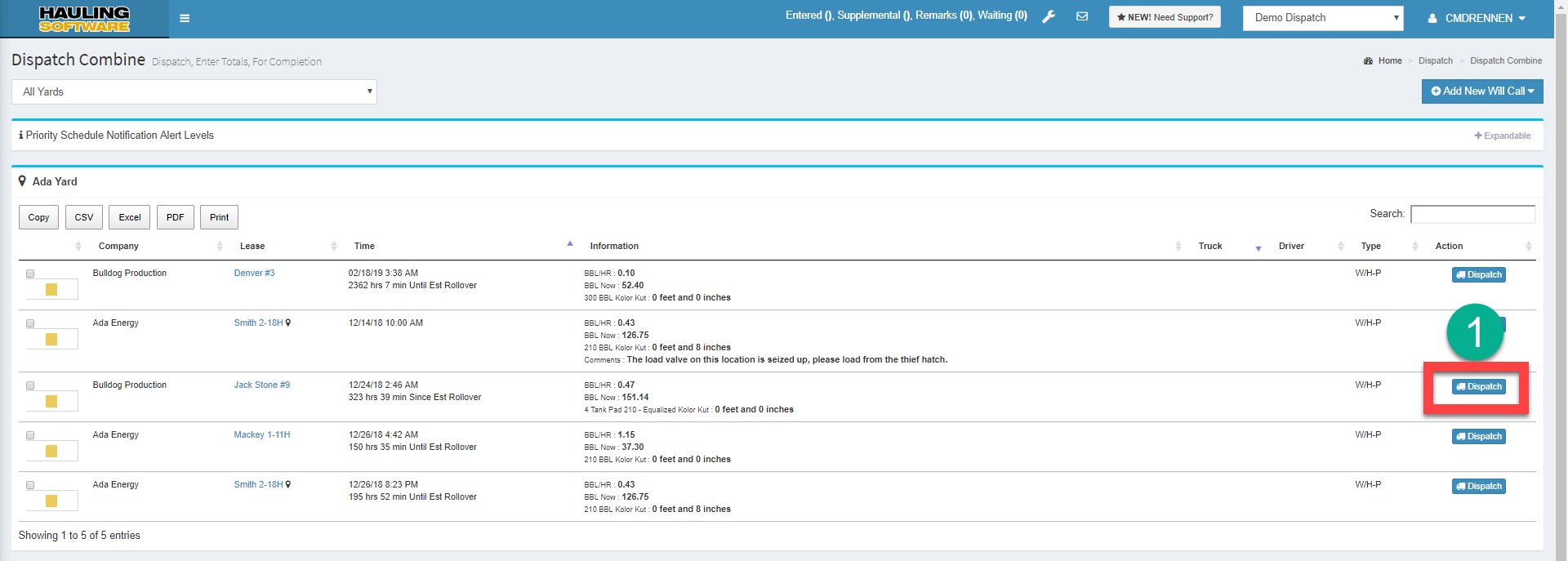 1. From the Dispatch Combine Schedule, Select the Lease that you want to Dispatch a Driver to