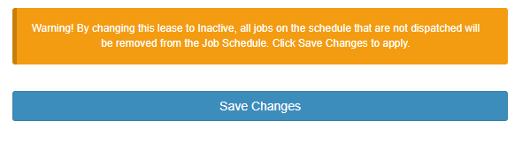 Lease change from Active to Inactive in Lease Admin | Issue: When changing lease status from active to inactive, jobs that have not been dispatched on job schedule were not being removed. Fix: User will now be prompted with a warning saying that changing a lease to inactive will remove all jobs in job schedule that have not been dispatched. ![]() |