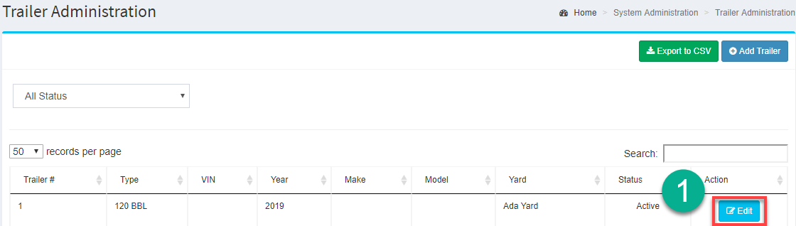 1. Select the Edit Button corresponding to the Trailer you wish to set to Inactive
